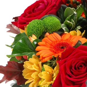 Apportez une touche de chaleur et de douceur à un moment difficile avec cette couronne pour urne de deuil dans les tons orange et rouge. Composée de roses, de germinis et d’autres fleurettes de saison, elle est un symbole de vie et de réconfort pour honorer la mémoire d’un être cher.