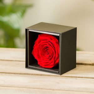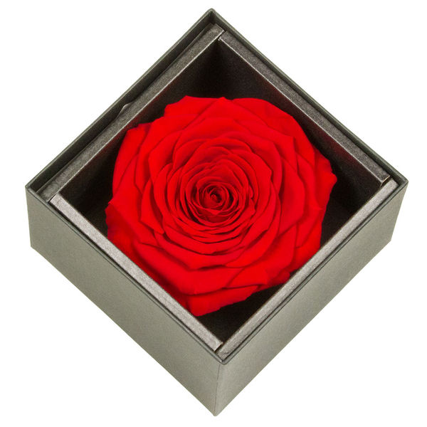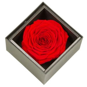 Cette rose rouge, symbole de l’amour passionnel, est mise en valeur dans un écrin somptueux pour transmettre votre amour indéfiniment. Un cadeau rare et distingué, à l’image de votre amour, éternel et sans faille.