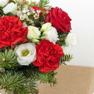 Le bouquet Santa est une création florale magnifique aux couleurs festives de Noël. Ses tons rouges et blancs apporteront chaleur et réconfort à celui ou celle qui le recevra. Composé de roses et de fleurs de saison, ce bouquet envoûtant est idéal pour offrir en cadeau.
