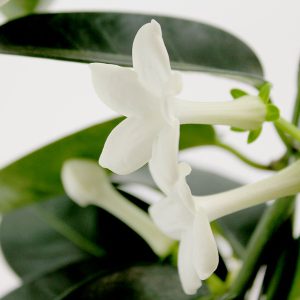 Originaire de Madagascar, le stéphanotis est une plante porte-bonheur qui a été la fleur préférée de Marylin Monroe. Ses fleurs blanches en trompettes étoilées dégagent une senteur subtile, mélange de jasmin et de lys. Si on ne le guide pas sur un support, il se déploie en longues guirlandes. Cette plante apprécie d’être près d’une fenêtre, dans un endroit aéré et éclairé, à l’abri du soleil direct.