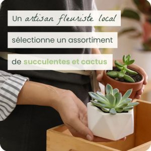 Chaque plante de notre assortiment est livrée dans un cache pot élégant aux tons neutres et naturels, pour une présentation parfaite dans votre intérieur. Offrez-vous ou offrez à vos proches un cadeau original et durable avec notre assortiment de succulentes et de cactus.