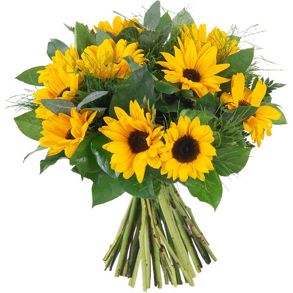 Célébrez l’été avec ce bouquet lumineux inspiré par le soleil et ses magnifiques couleurs. Composé de tournesols et de feuillages verts, ce bouquet apportera une touche de fraîcheur à votre intérieur.