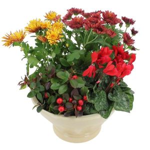 Cette coupe de plantes en chrysanthèmes et cyclamen est un hommage parfait pour nos défunts, d’aujourd’hui et d’hier. Elle saura témoigner de votre compassion avec simplicité et prestance, tout en conservant sa fraîcheur sur plusieurs jours.